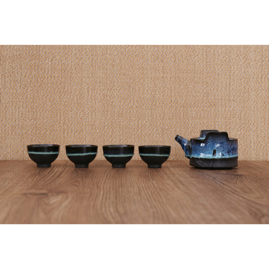 Blue Silver Flowers Jian Zhan Gift Tea Set-S