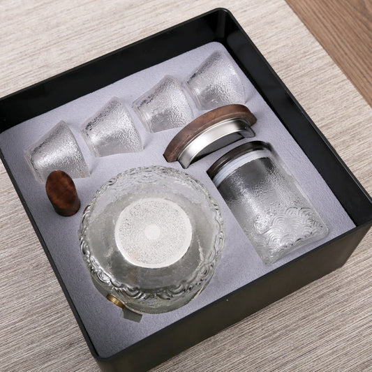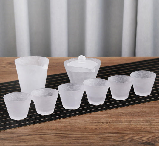 Ice Dew Glass Gaiwan 6 Cups Tea Set ( Non-transparent)