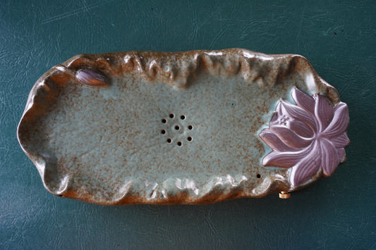 Green/Gold Ceramic Zen Lotus Tea Tray
