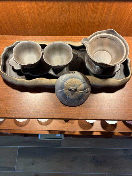 Gold And Brown Gilt Lotus Gaiwan Tea Set