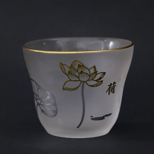 Glass 4 Teacups Tea Set Non-transparent (Golden Lotus*2 + Golden Orchid*2)