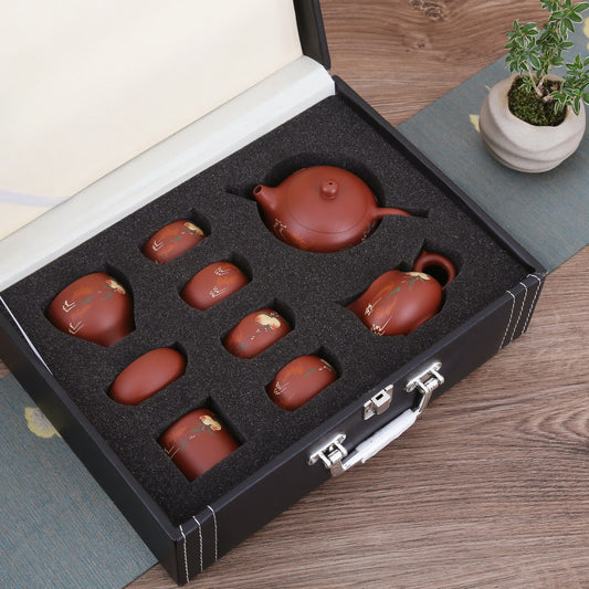 Gift Tea Set - 1 Teapot 4 Teacups (Yixing Ware, Zhu Ni, 9)