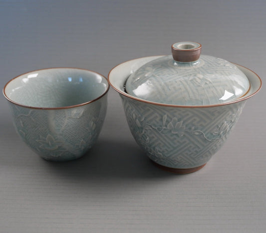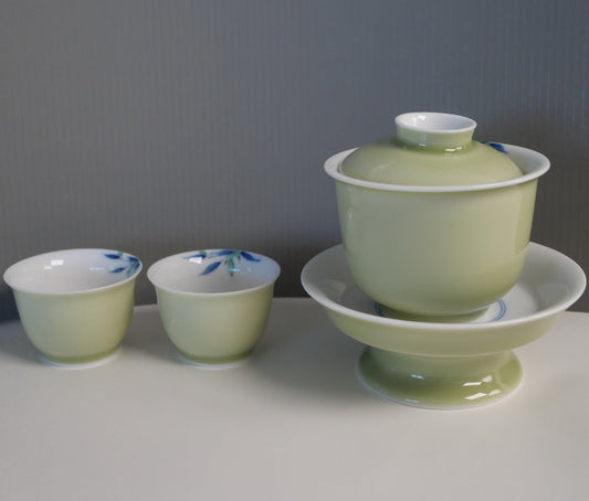 Blue Magnolia Flower Celadon Blue Gaiwan and Cup