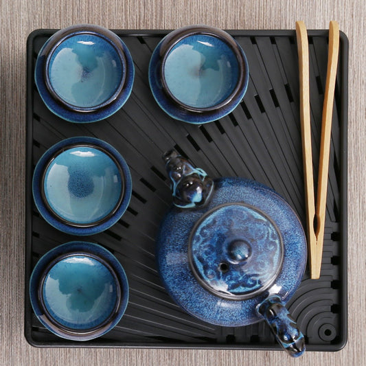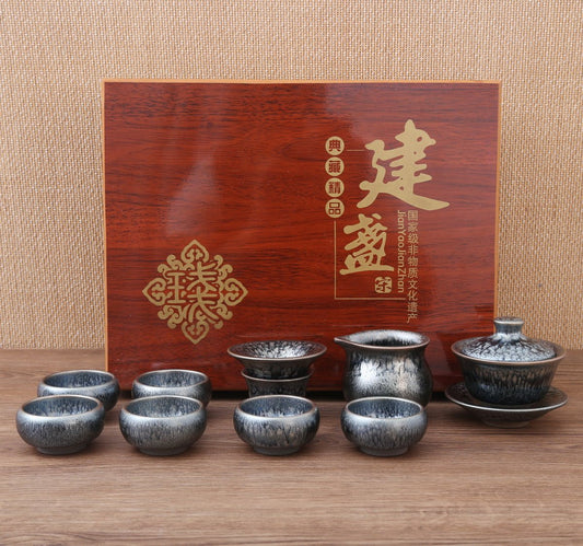Blue Silver Flowers Jian Zhan Gift Tea Set-M