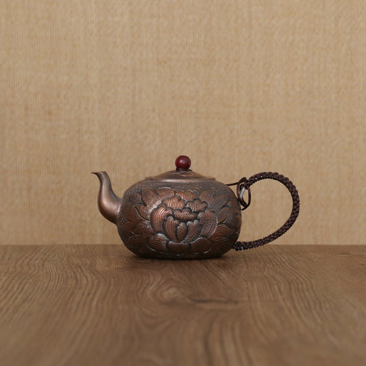 Vintage Bamboo Weaving With Vine Pattern Copper Teapot