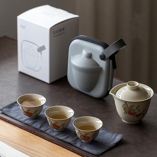 Hand Painted 4 Style Ash Ceramic Travel Tea Set