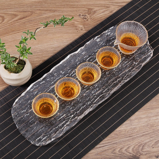 Glass Tree Bark Shape 48cm Large Size Tea Tray