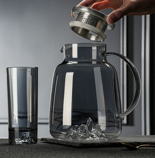 Glass Water Cooler Transparent Jug with Stainless Steel Lid 1600ml Mountain Desgin
