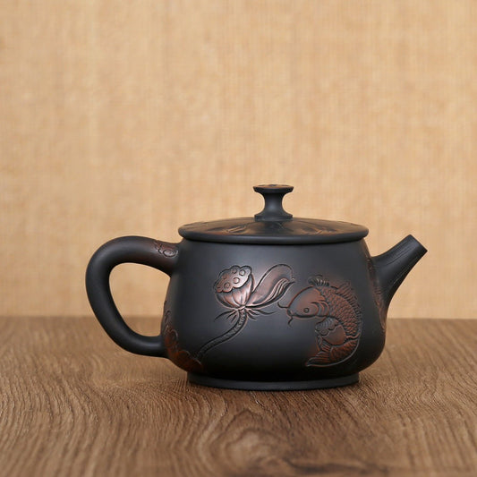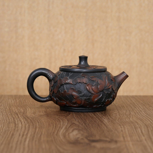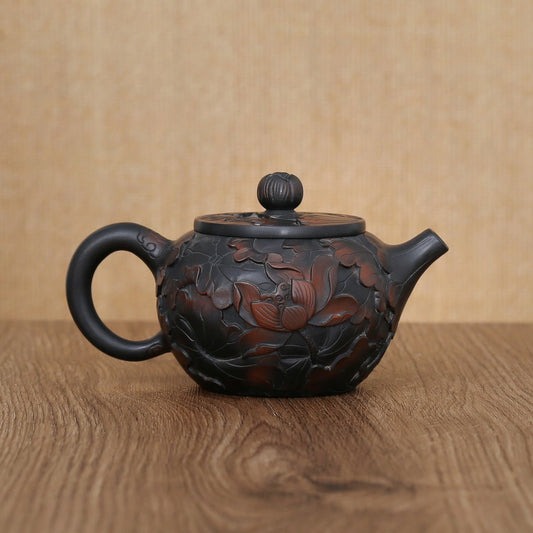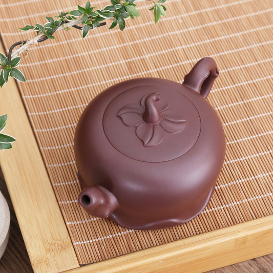 Handcraf Low Relief Lotus Jian Shui Purple Pottery Teapot