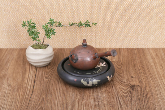 Teapot Holder, Jianshui Purple Pottery (Pink Lotus Flowers)