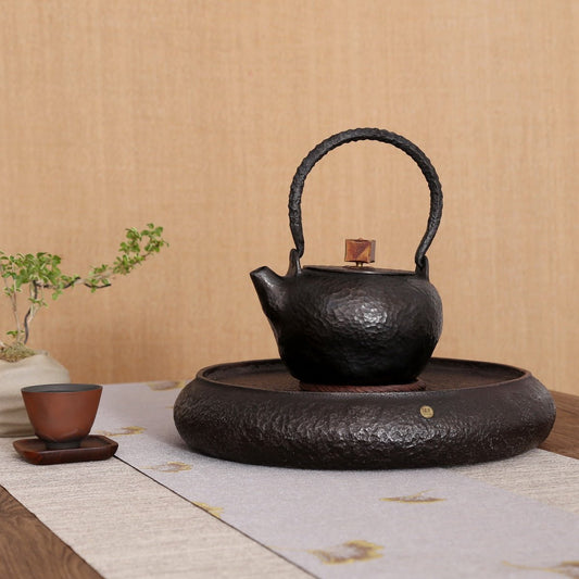 Handcraft Iron Tray for Kettle (wrought iron) - Medium, with built Strainer