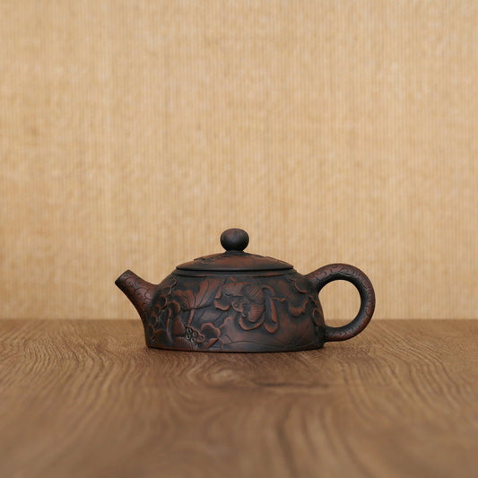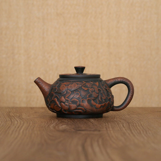 Jianshui Purple Pottery Lotus Flower Full Engraving Handcraft Teapot